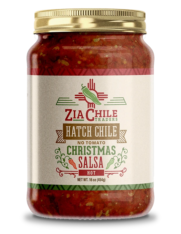 Hatch Chile Christmas Salsa is Hatch grown Red and Green Chiles, sweet onion, fresh garlic, raw sugar, distilled vinegar and spices with NO TOMATOES!!!The red liquid is fueled by sun-driedred chile puree. Rooted in tradition,Zia Chile Traders strive to bring fresh flavors and recipes to the traditionalworld of New Mexico cooking.
