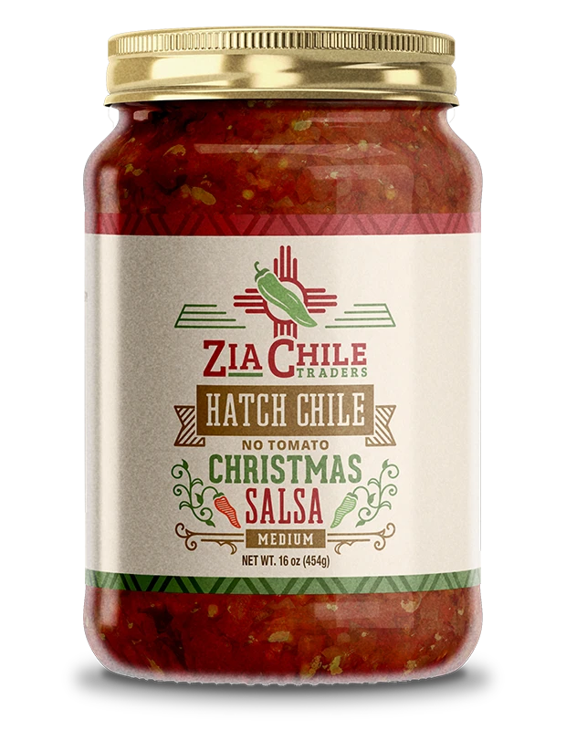 Hatch Chile Christmas Salsa is Hatch grown Red and Green Chiles, sweet onion, fresh garlic, raw sugar, distilled vinegar and spices with NO TOMATOES!!!The red liquid is fueled by sun-driedred chile puree. Rooted in tradition,Zia Chile Traders strive to bring fresh flavors and recipes to the traditionalworld of New Mexico cooking.